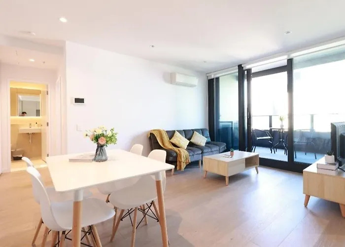 Apartament 04D Abnb-Style Skyline View, Parking And Pool, 7Mins To Crown Melbourne oferuje łatwy dostęp do takich atrakcji turystycznych jak Viva Energy Corporate Office, położonych w odległości 5-minutowego spaceru. Apartament o powierzchni 75 m² usytuowany jest tylko 650 m Akwarium w Melbourne i oferuje kryty basen.